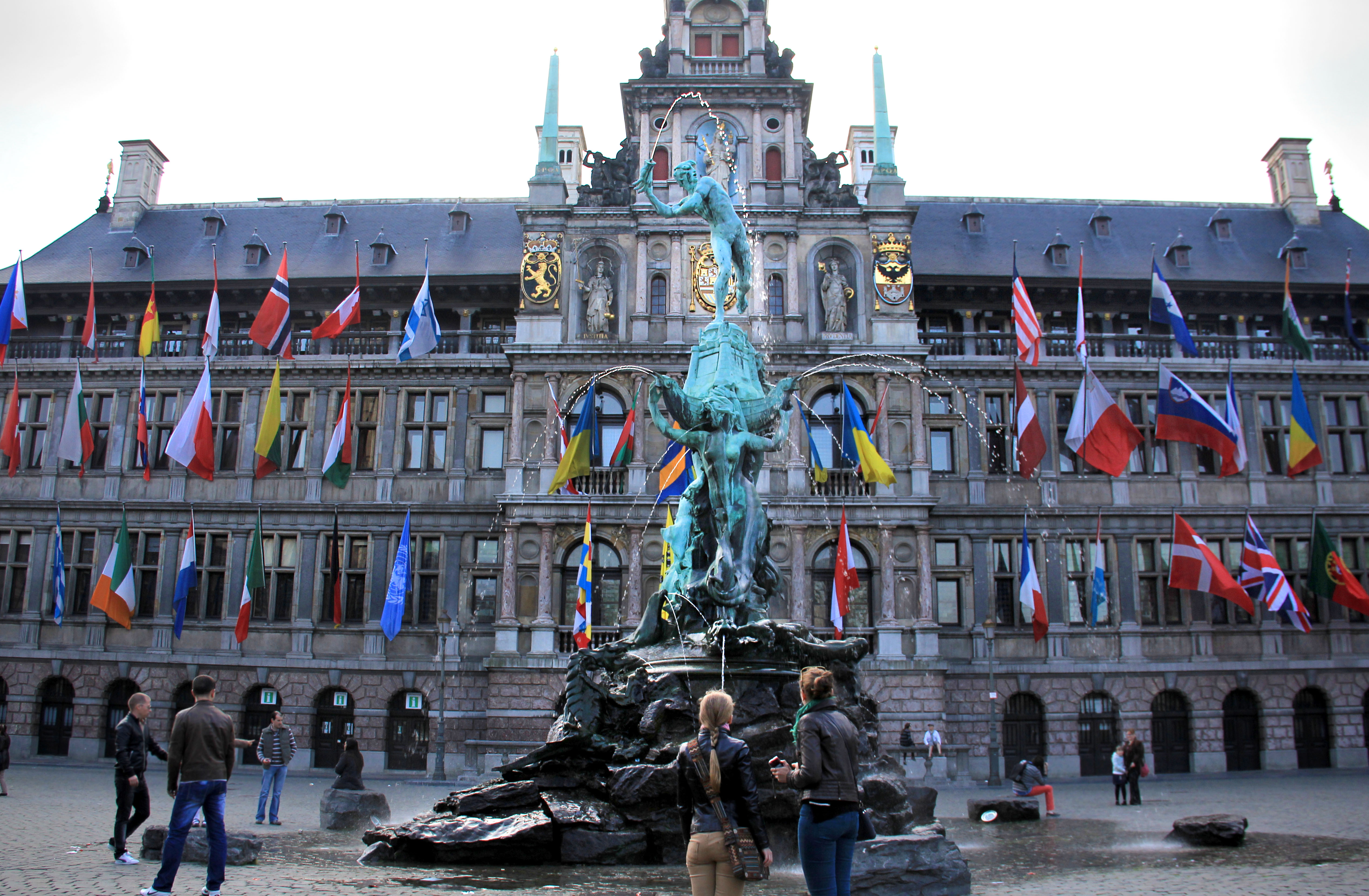 Previous ImageNext Image Statue in front of Antwerp City Hall Silvius Brabo is said to have killed a giant and threw his hand into the river, which is where we get the name ‘Antwerp’ May//2013