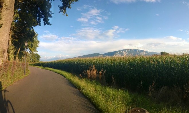 Previous ImageNext Image WP_20140803_13_44_46_Panorama20140803141635 Bike path in Cologny Switzerland where the tip of Mount Blanc is sometimes visible (taken on phone)